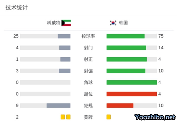 韩国3-1科威特 孙兴慜点射破门韩国4胜1平高居B组第一