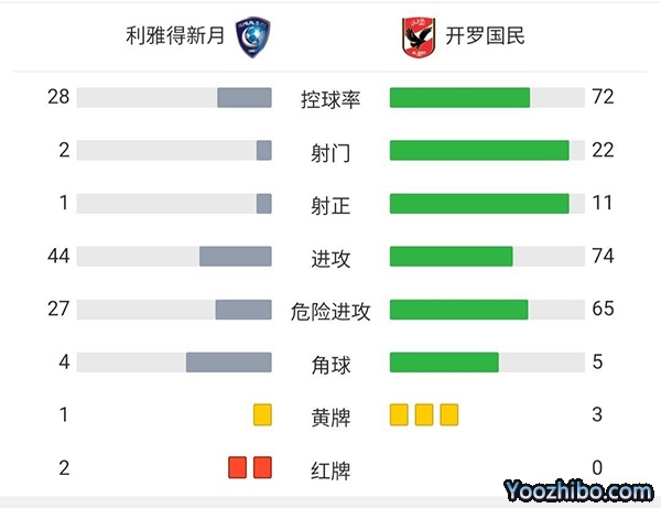 全场比赛结束,开罗国民4-0大胜少两人作战的利雅得新月!