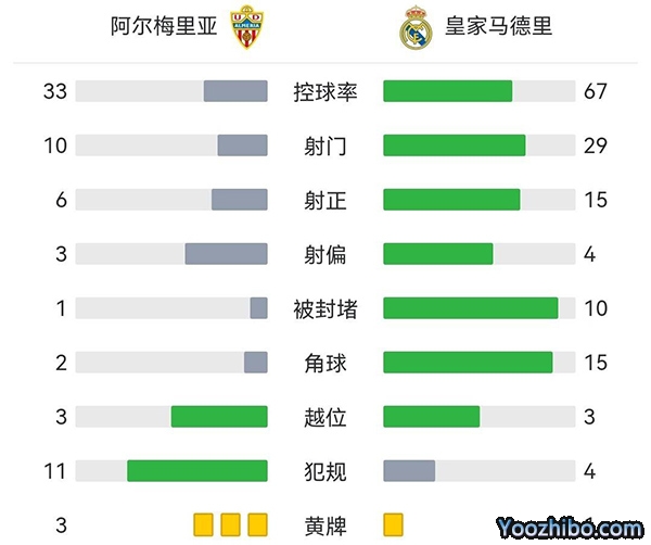 全场比赛结束,最终皇马2-1逆转阿尔梅里亚。