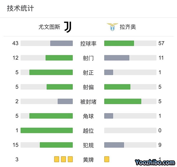 全场比赛结束,最终尤文图斯1-0拉齐奥晋级四强。