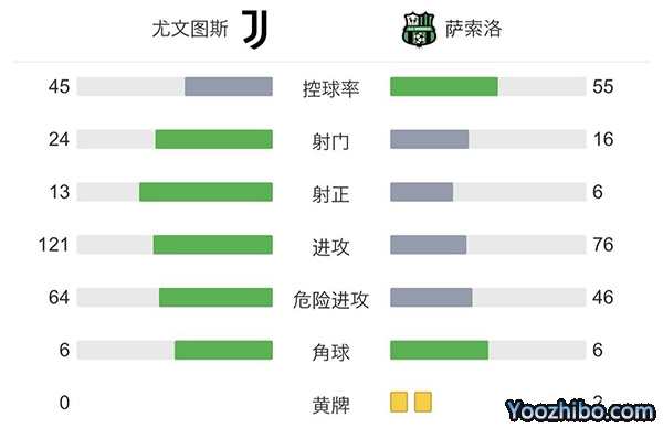 第3分钟,桑德罗左路倒三角传中,麦肯尼射门被挡,迪巴拉跟上再射将球打进,尤文图斯1-0萨索洛。