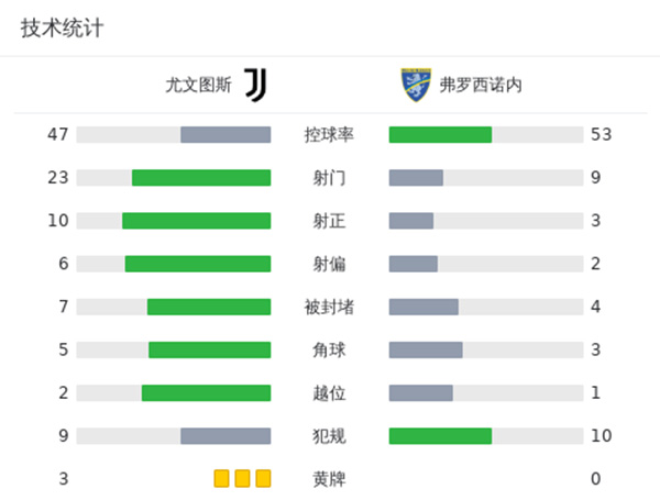 第11分钟,米利克主罚点球命中,尤文1-0领先弗洛西诺内↓