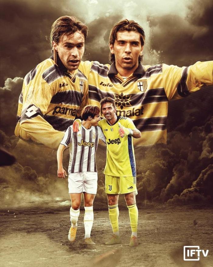 时间来到2021年,43岁的布冯与23岁的费德里科-基耶萨一同赢得意大利杯冠军,此役两人一同首发,小基耶萨打入一球,而这很可能是布冯职业生涯最后一次代表尤文出战。