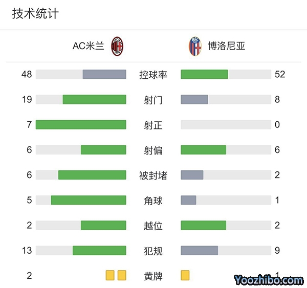 全场比赛结束,AC米兰主场2-0战胜博洛尼亚。