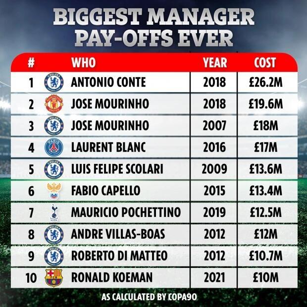 足坛解约金最高主帅排行:孔蒂第一,穆帅占据二三
