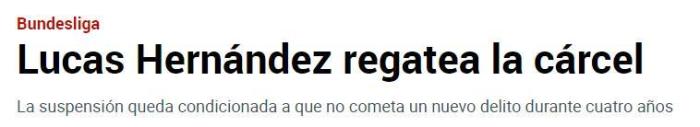 来源:178直播10-28 15:27178直播10月28日讯 据《马卡报》等多家西班牙媒体报道,法国后卫卢卡斯-埃尔南德斯无需入狱服刑,只需缴纳9.6万欧元罚款同时保证自己4年内不再犯罪。