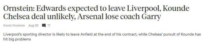 178直播8月31日讯 据TheAthletic报道,利物浦体育总监爱德华兹将在本赛季结束后离开。