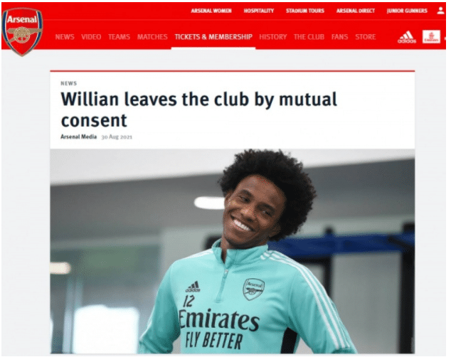 三、威廉和阿森纳解约。