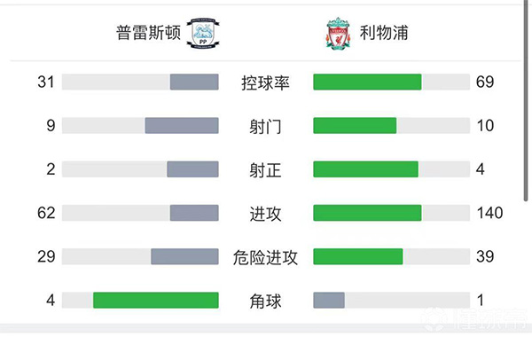 全场比赛结束,利物浦2-0战胜普雷斯顿,晋级联赛杯8强。